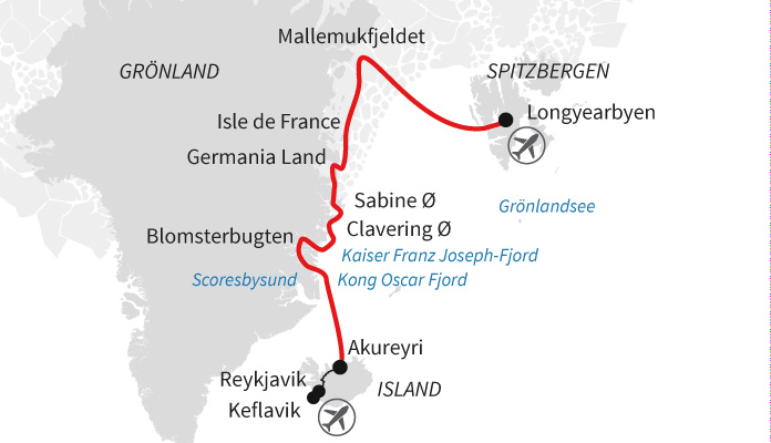 Wenn Sie sich an die dramatische, zerklüftete Küste Nordostgrönlands wagen, gelangen Sie in den größten Fjord der Welt, den Scoresbysund, wo Sie Walen, Seevögel und Moschusochsen begegnen, bevor Sie durch die schönsten Meerengen und Fjorde nach Norden reisen.