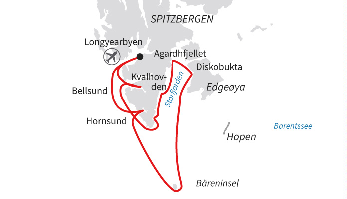 Machen Sie sich bereit, während 9 Nächten den Süden von Spitzbergen zu erkunden, der größten Insel der Svalbard-Inselgruppe und Heimat einer Vielzahl arktischer Wildtiere.