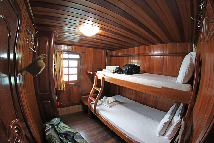 • Die Iracema verfügt über 8 Zweibettkabinen auf dem Hauptdeck und 4 Zweibettkabinen auf dem Oberdeck. Die Kabinen sind zweckmäßig ausgestattet und dennoch gemütlich und verfügen über Stockbetten, eine Klimaanlage und ein kleines privates Badezimmer mit Dusche/WC.