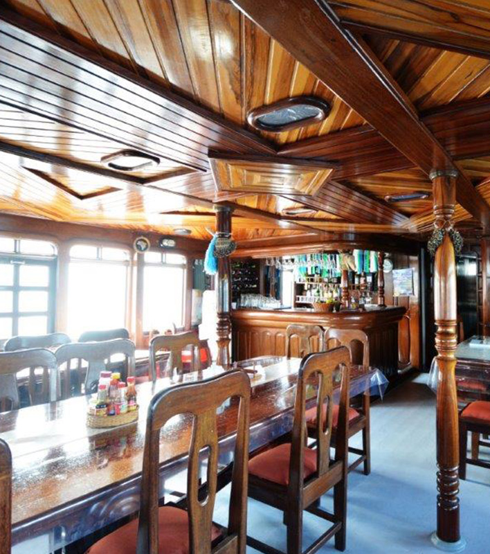 • Schiffsausstattung: Restaurant, Bar, kleine Bibliothek, Aussichtsdeck mit Hängematten sowie Beiboote für Ausfahrten.